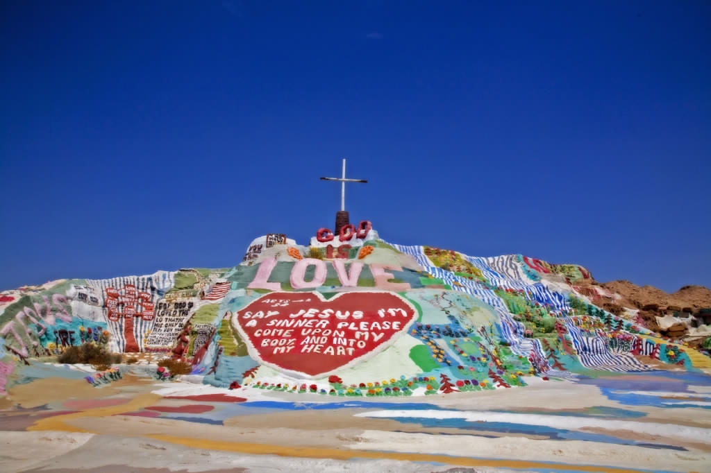 Miren que increíble esta instalación de arte hecha en medio del desierto. “Salvation Mountain” es una mágica y colorida montaña artificial que se encuentra en el desierto de California (entre Niland