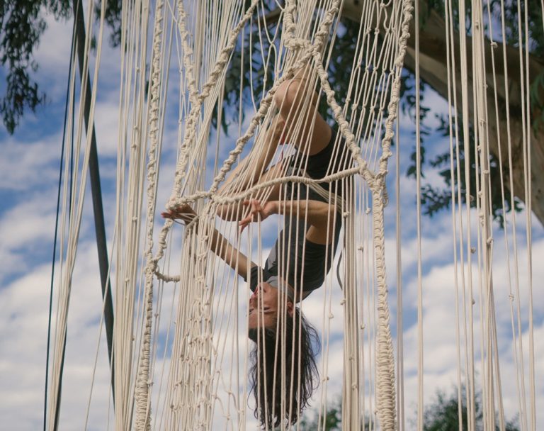 “Mujeres que tejen en el aire” por compañía ContrahíloLab Las y los visitantes podrán ver