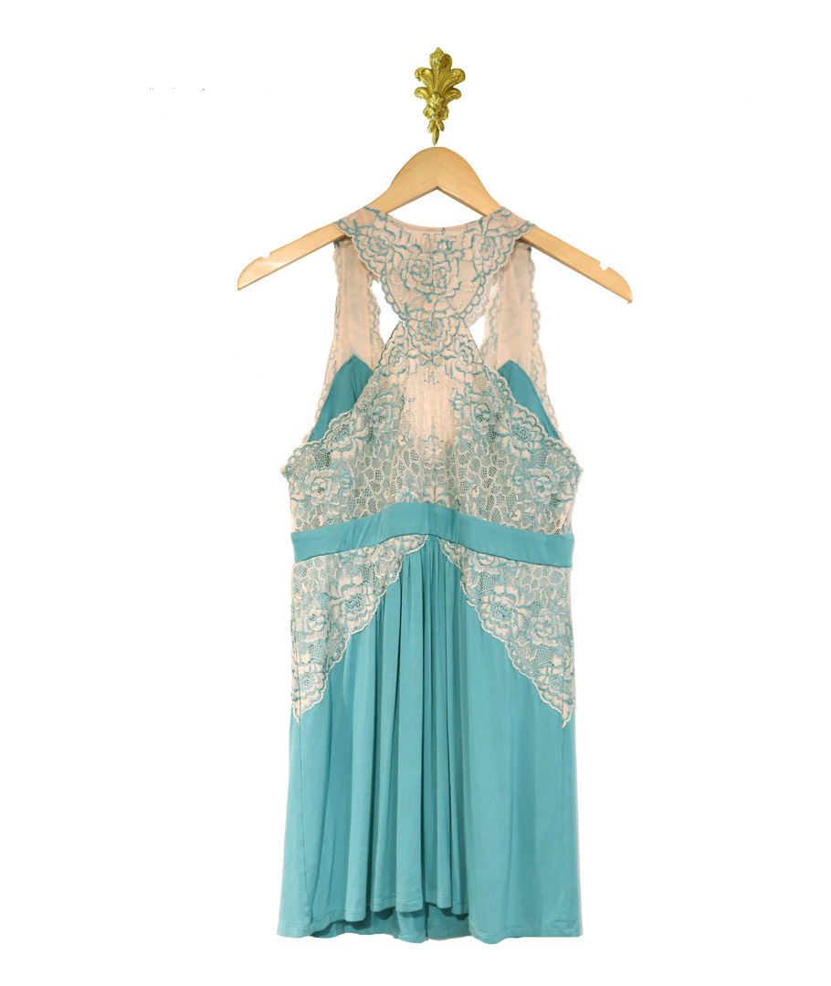 *Polera celeste con encaje elasticada, y detalle encaje en la espalda