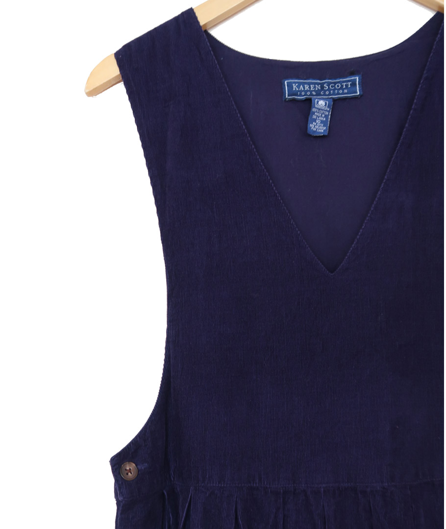 Vestido de cotele azul marino estilo jardinera, abotonados a los dos lados