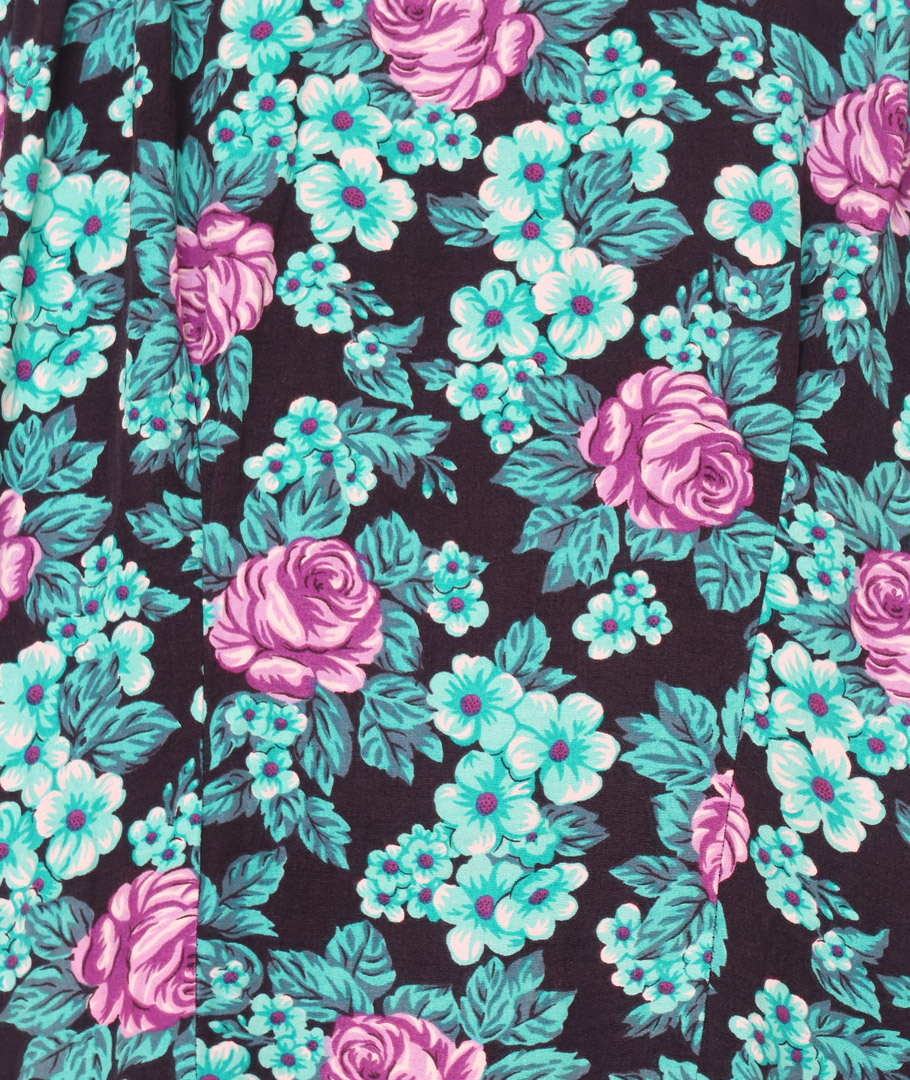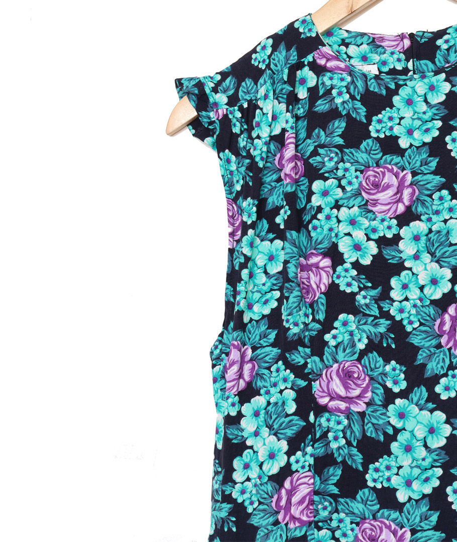 Vestido negro flores moradas y verdes