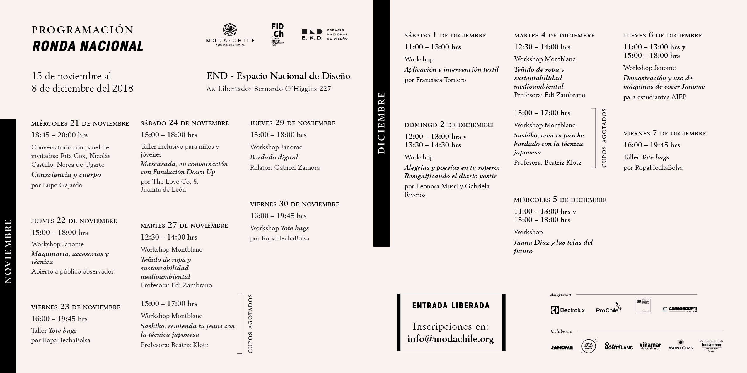 La asociación Moda Chile y la corporación cultural FID.Ch crean la exposición «Ronda Nacional», en el Espacio Nacional de Diseño (E.N.D), en el marco del mes del Diseño 2018.